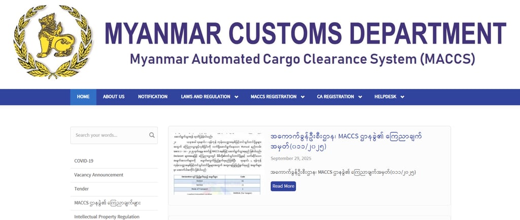 MACCS စနစ်နဲ့ ရင်းနှီးဖို့က အရေးကြီးပါတယ်။ လိုအပ်ရင် MACCS ရုံးဝက်ဘ်ဆိုဒ်မှာလည်း သွင်းကုန်/ထုတ်ကုန်လုပ်ငန်းရှင်အတွက် လုပ်ထုံးလုပ်နည်းတွေကို ရှာဖတ်နိုင်ပါတယ်။