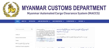 MACCS စနစ်ဆိုတာ Myanmar Automated Cargo Clearance System ဖြစ်ပြီး မြန်မာနိုင်ငံအတွင်း သွင်းကုန်၊ ထုတ်ကုန်လုပ်ငန်းများအတွက် အကောက်ခွန်ဆိုင်ရာ လုပ်ငန်းစဉ်များကို အော်တိုမေးရှင်းနည်းပညာဖြင့် စနစ်တကျ ဆောင်ရွက်နိုင်ရန် ရည်ရွယ်ထားတဲ့ စနစ်တစ်ခုပါ။