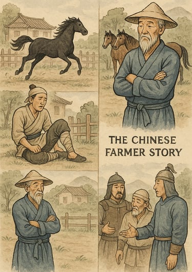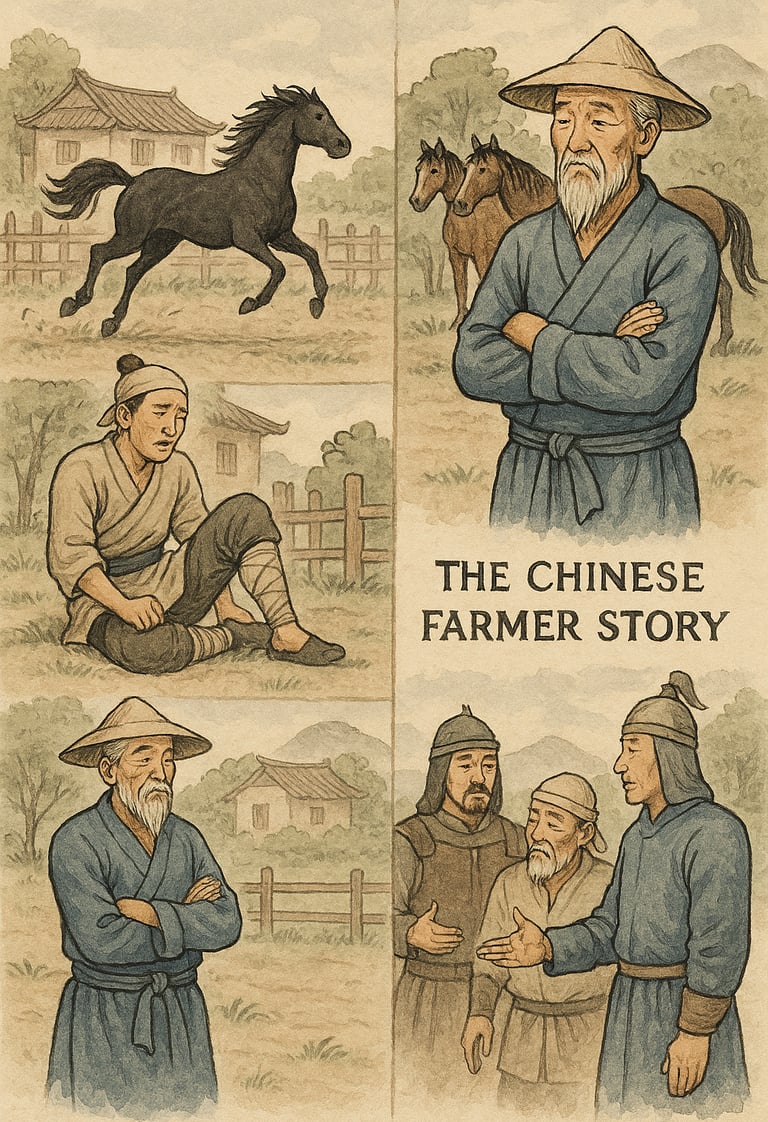 တစ်ခါတုန်းက တရုတ်ရွာတစ်ရွာမှာ လယ်သမားတစ်ဦးနေထိုင်ပါတယ်။ တစ်နေ့မှာ သူ့မြင်းတစ်ကောင် တောထဲကို ထွက်ပြေးသွားပါတယ်။